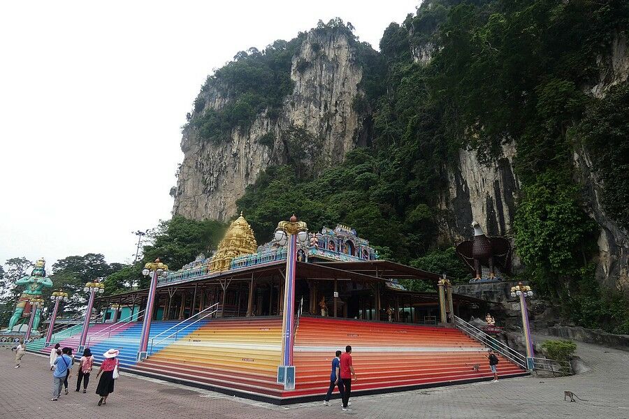 Direction vers l'ensemble des grottes de Batu (pas de pléonasme, car caves veut dire grotte en malais, ils ne se sont pas trop foulés pour la traduction). Le plus grand temple Hindou à l'extérieur de l'Inde. L'escalier multicolore annonce la couleur du point de vue des yeux et la douleur du point de vue des cuisses.